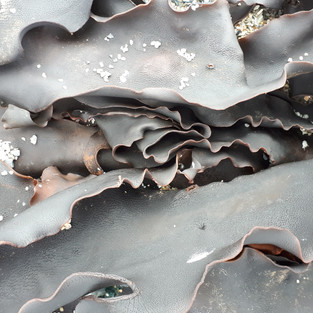 Monday - 2 full weeks here!! Another late start, and low tide was just before 10, so I got straight out and drove to British Admiral Beach to walk back along the shore towards Currie. The day was actually warm, with no wind – for the first time ever! I didn’t really want to take the oilskin but thought I should for safety for the phone. I had a great time clambering over the orange rocks and blue stones, and just kept going. I found some kelp ‘antlers’, a crayfish head - badly damaged, a walking stick, and some sea urchins. By now I was dehydrated, and knew I had been in the sun for too long. I also knew it was going to be a long way back, and decided to go on the road rather than the rocks.. At least the weather was pleasant for walking, for the first time! There was a stench of death frequently wafting up from the side of the road from the wallabies, and I noticed quite a few blue-tongue-like lizards, or rather, their remains. I couldn’t pass a complete spine, (nice and clean) so popped it in my treasure bag. I was so pleased to see the car and drink waaaaaater!!!